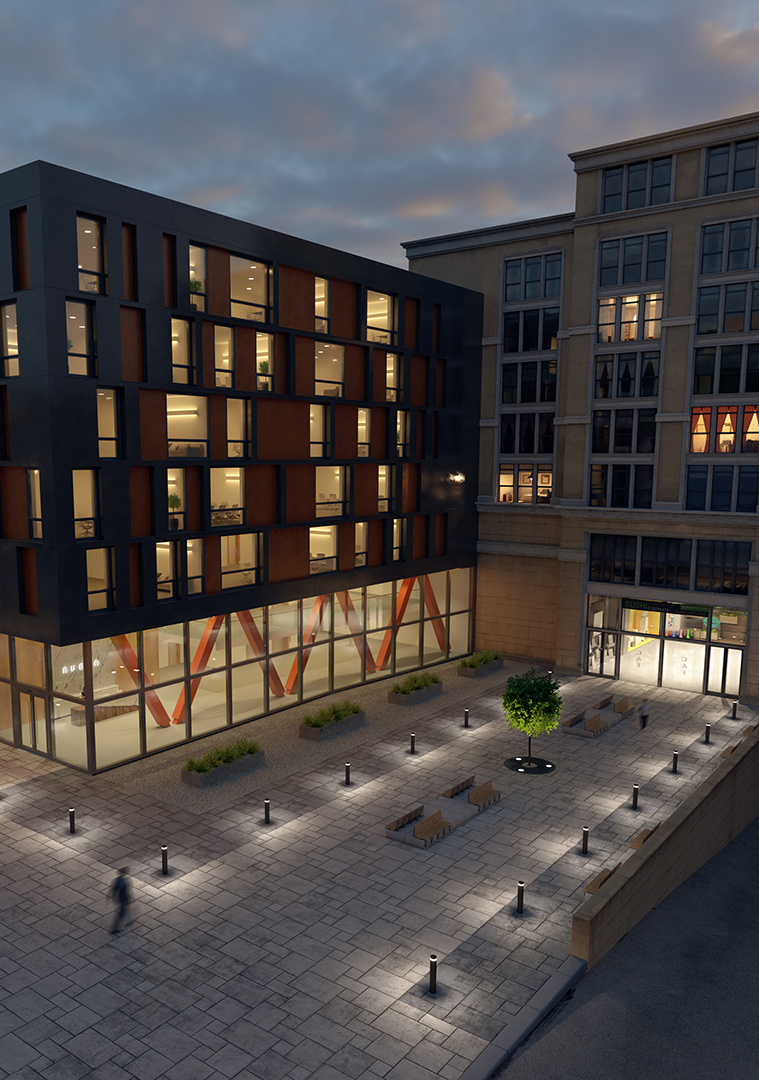 The Newton Led Pro is made of aluminium, the 25.1 Watt LED module is recessed into the head and casts the warm white LED light (3000K) over the stand and all around the walkway.