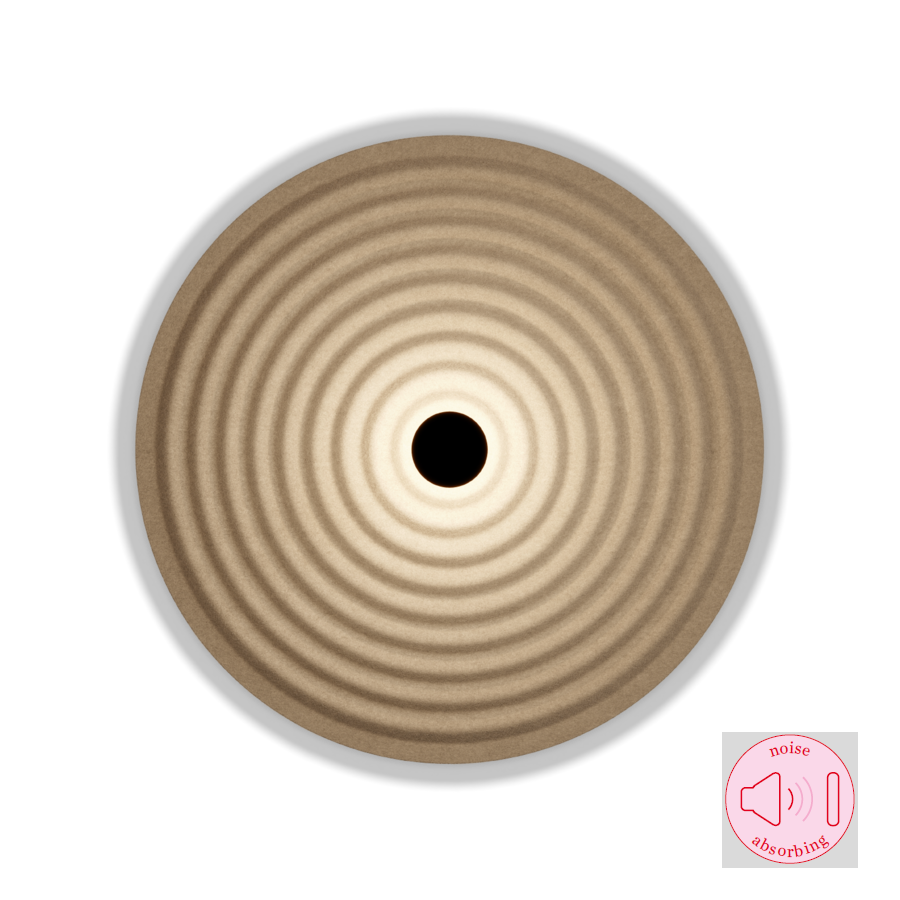 Tapis soft 1.0 wall fixture is made of sound-absorbing felt, has an indirect light distribution, the LEDs are located in the Ø75mm black cone at the front.