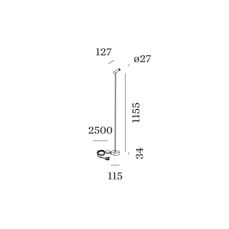 8Watt warm wit (2700K) ledlicht is dimbaar dmv de vloerschakelaar met 2,5 meter aansluitsnoer.