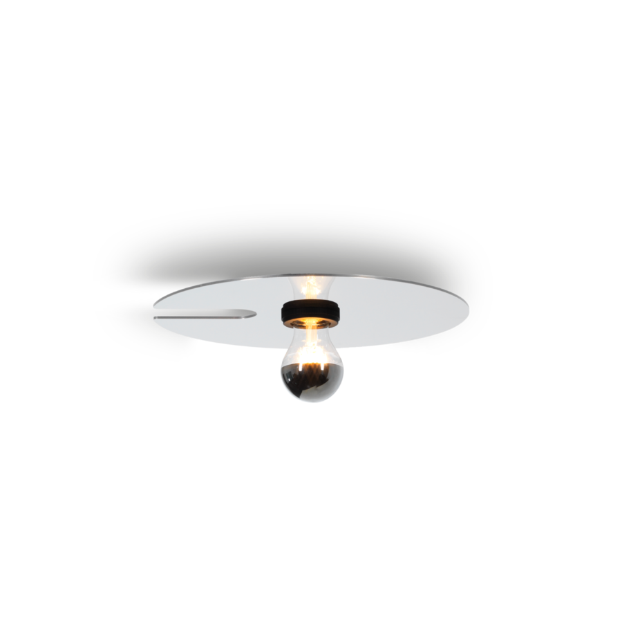Mirro 1.0 is een rond wand-/plafond armatuur in 300mm met centraal de ledlamp welke het licht reflecteert in de spiegel van goud, gepolijst alu of chroom.